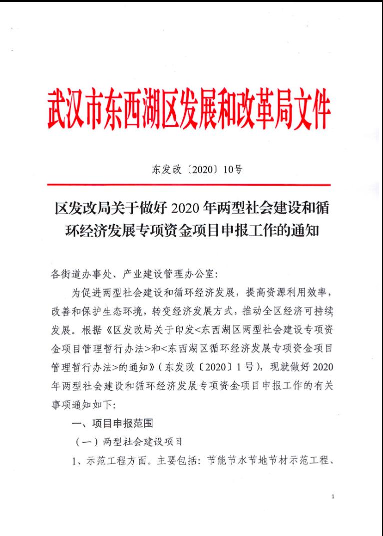 區發改局關于做好2020年兩型社會建設和循環經濟發展專項資金項目申報工作的通知