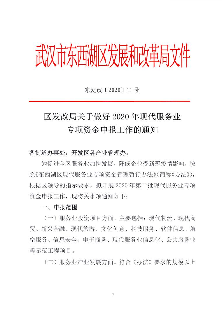 區發改局關于做好2020年現代服務業專項資金申報工作的通知