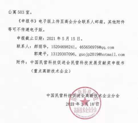 2、申報材料一式兩份,統一用A4紙裝訂成冊。請在2021年5月10日前將申報材料送至省高促會,逾期不再受理。