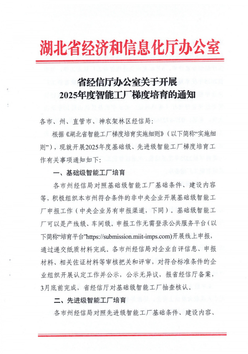 省經信廳辦公室關于開展2025年度智能工廠梯度培育的通知